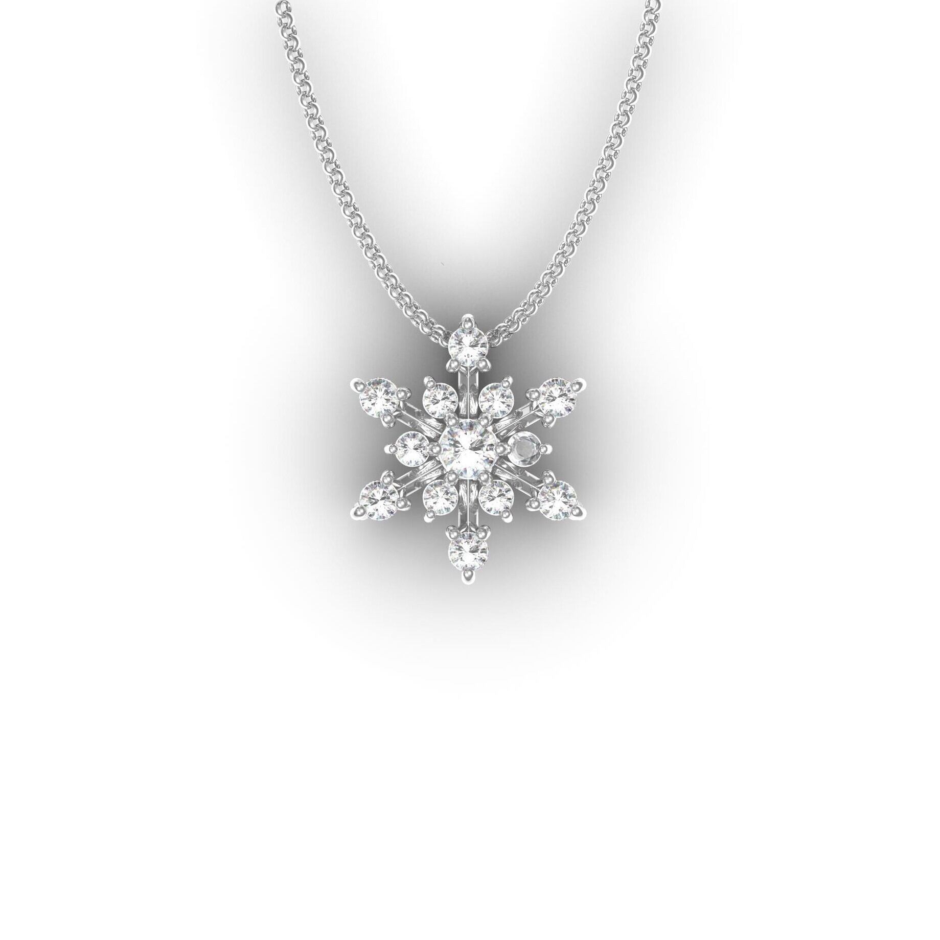 雪の結晶をモチーフにダイヤをセットしたネックレス