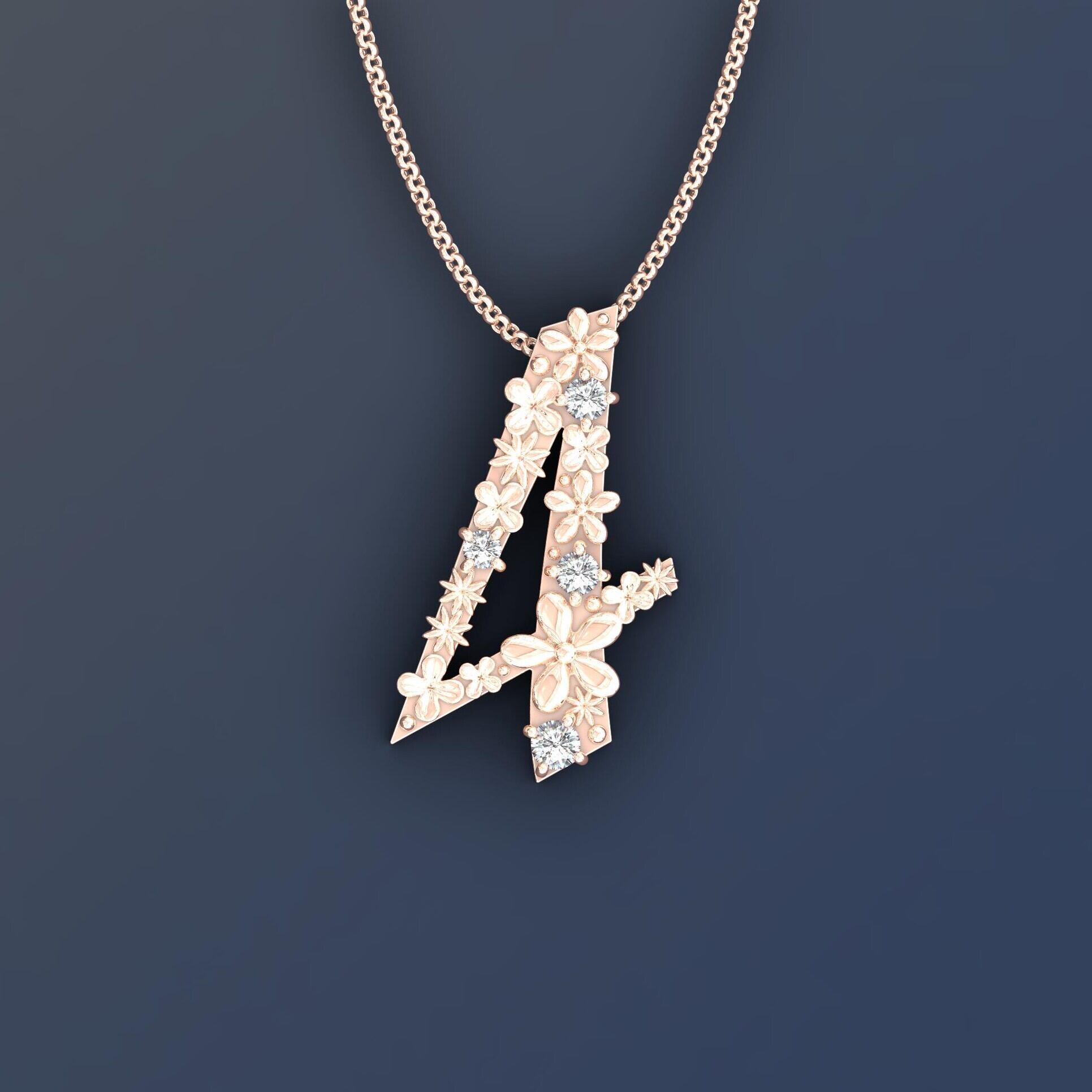数字の4の表面に様々な花を花畑のようにデザインしたペンダント