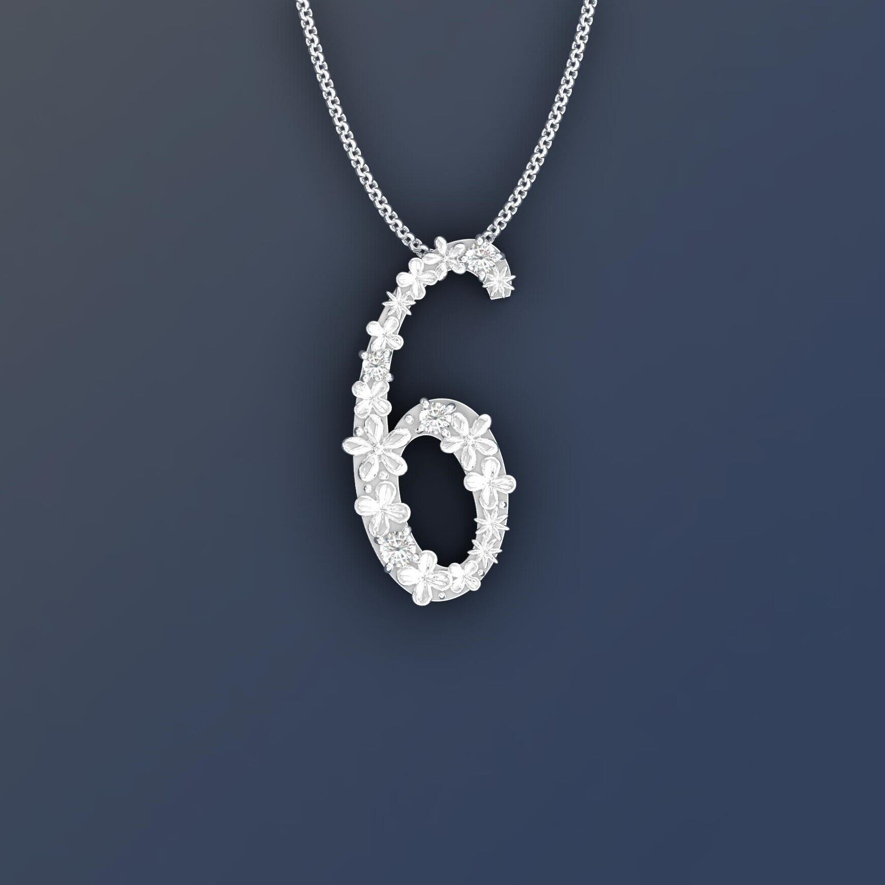 数字の6の表面に様々な花を花畑のようにデザインしたペンダント